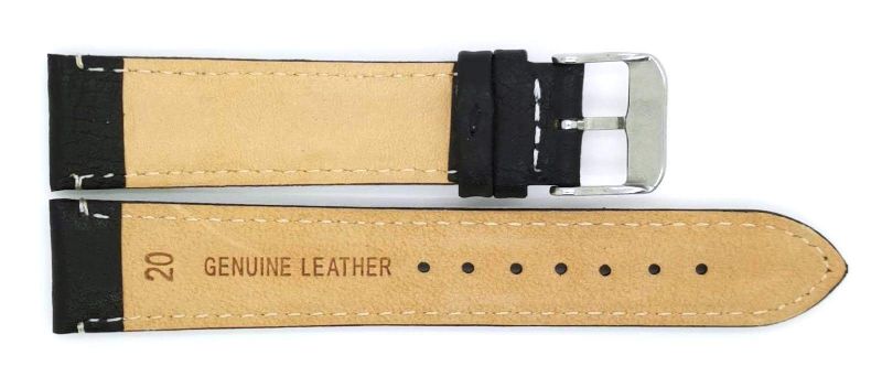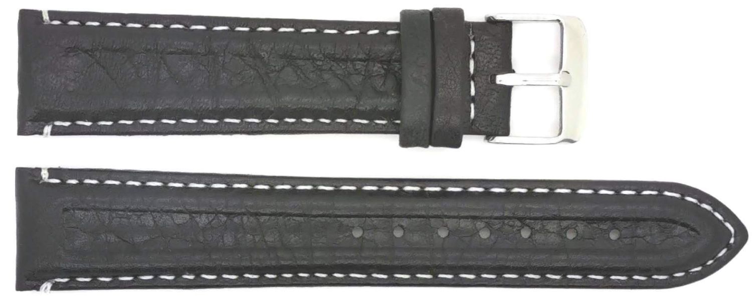 HC Horlogeband, 18mm - D.Bruin - Gevuld - met witte Stiksel - echt Buffelleer - 19590