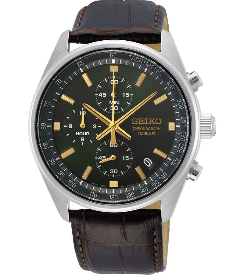 Seiko Herenhorloge Chronograaf SSB385P1 – Mosgroene Wijzerplaat – Staal & Leer