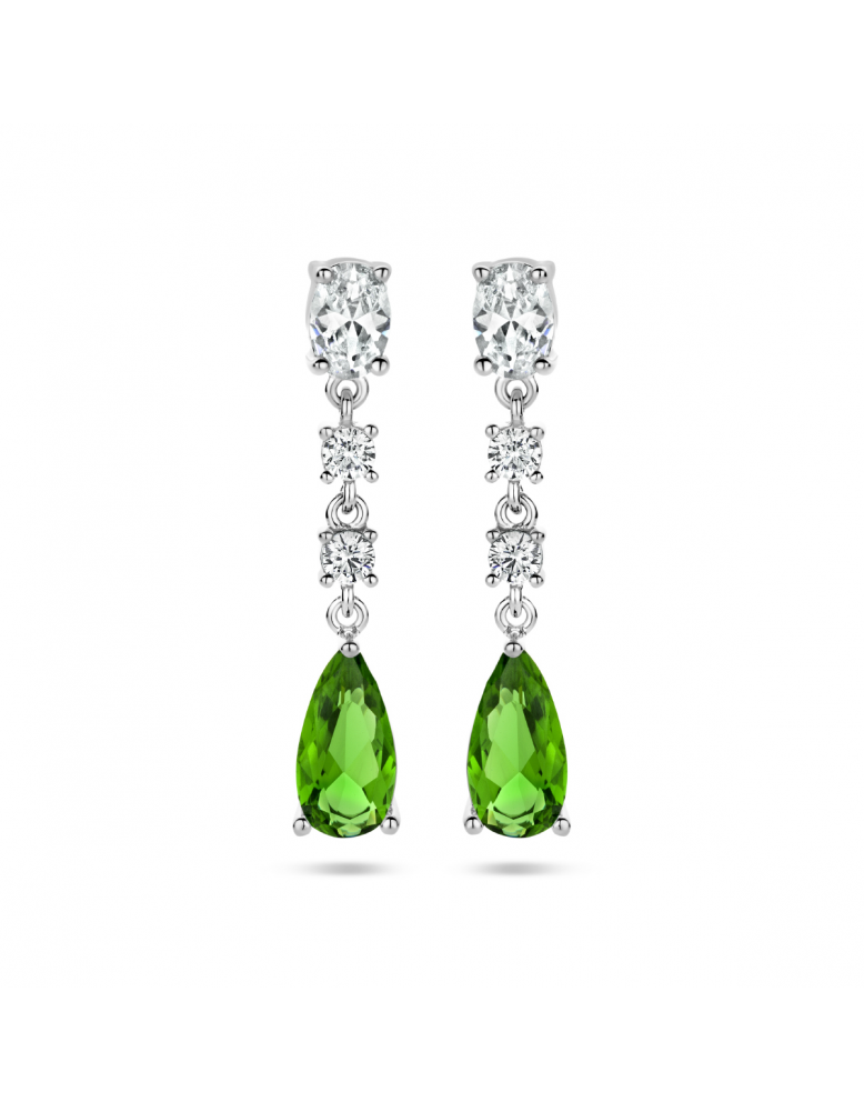 Oorhangers, zilver gerhodineerd met wit en groen zirkonia (3cm.) - 22434