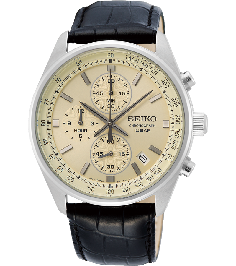Seiko Herenhorloge Chronograaf SSB383P1 – Crème – Staal & Zwart Leer