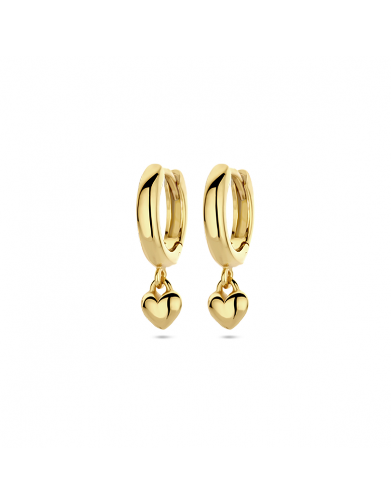 Ooorringen, zilver verguld met hangend hartje (16 mm.) - 24473