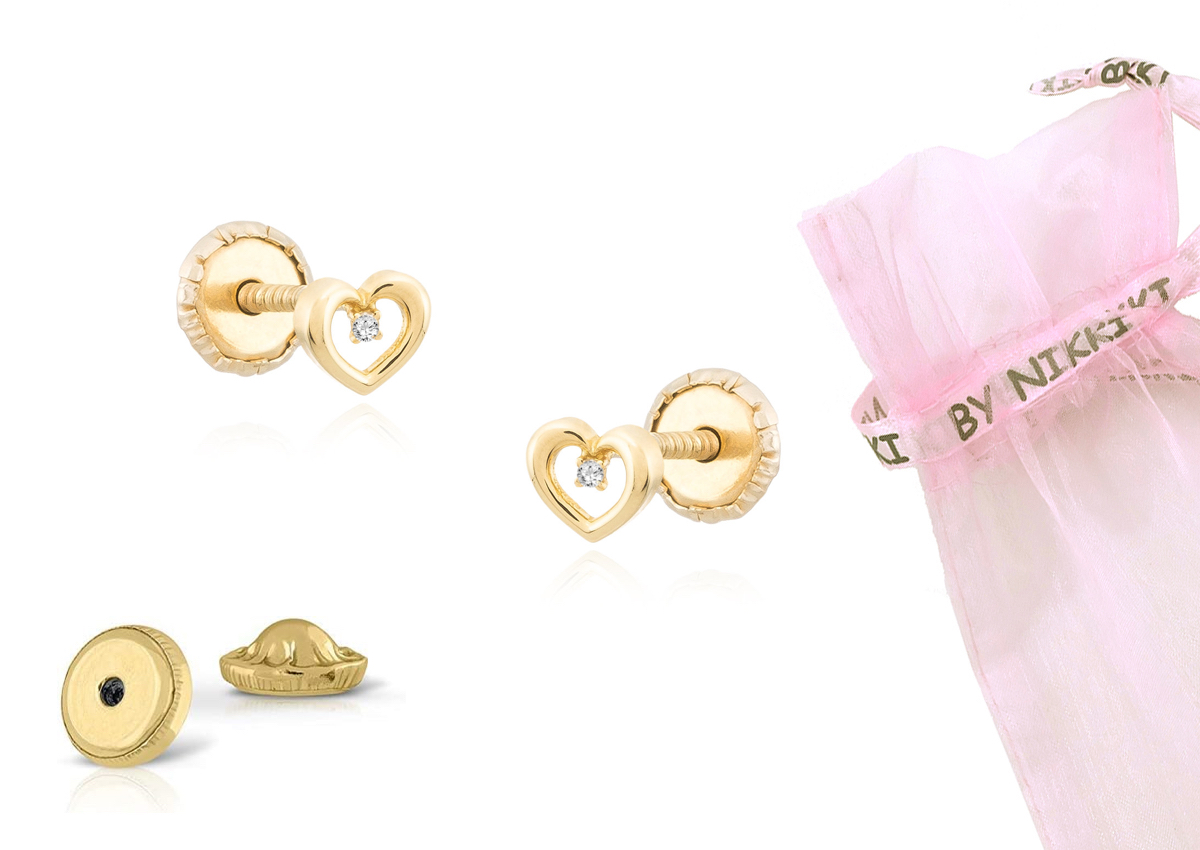 BY NIKKI Oorknoppen, 14krt.goud hart met diamant (4,5mm.) - 24485