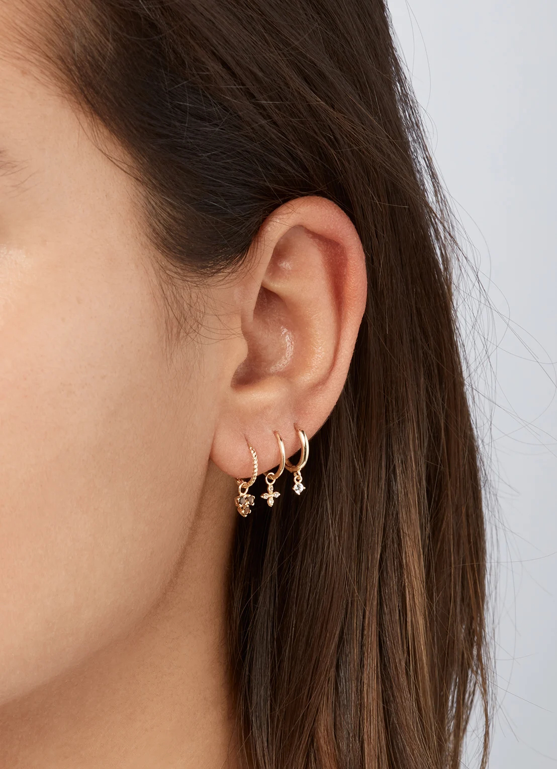 Jackie Oorringen, 14krt.goud met wit topaas "Shining Star WTop Hoops" (15x1,6mm.) - 24493