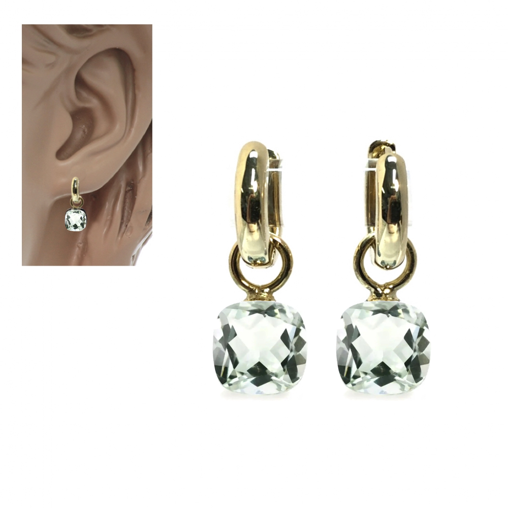 Oorbedels, 14krt.goud (Prasioliet cushion 8x8mm.) excl.oorringen! - 24498