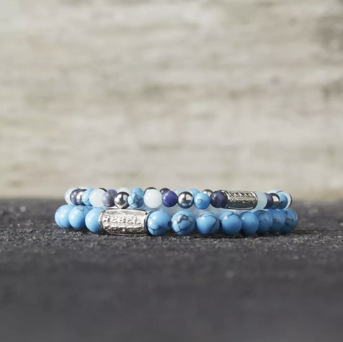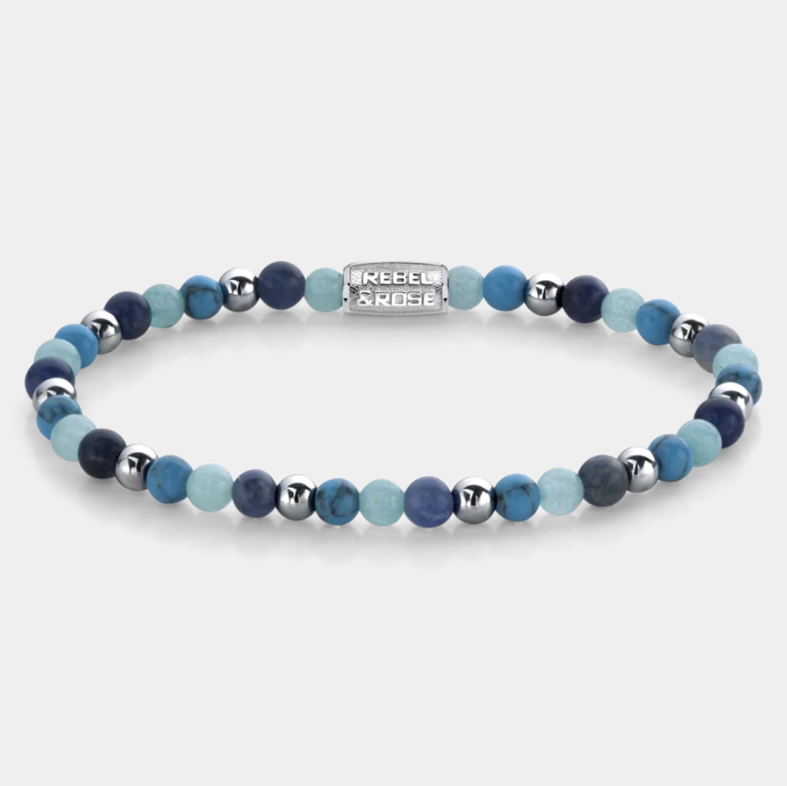 Rebel and Rose Armband "Blue Summer Vibes" met Sodaliet, Hematiet, Art. Turquoise, Jade (maat S: 16,5cm) - 24524