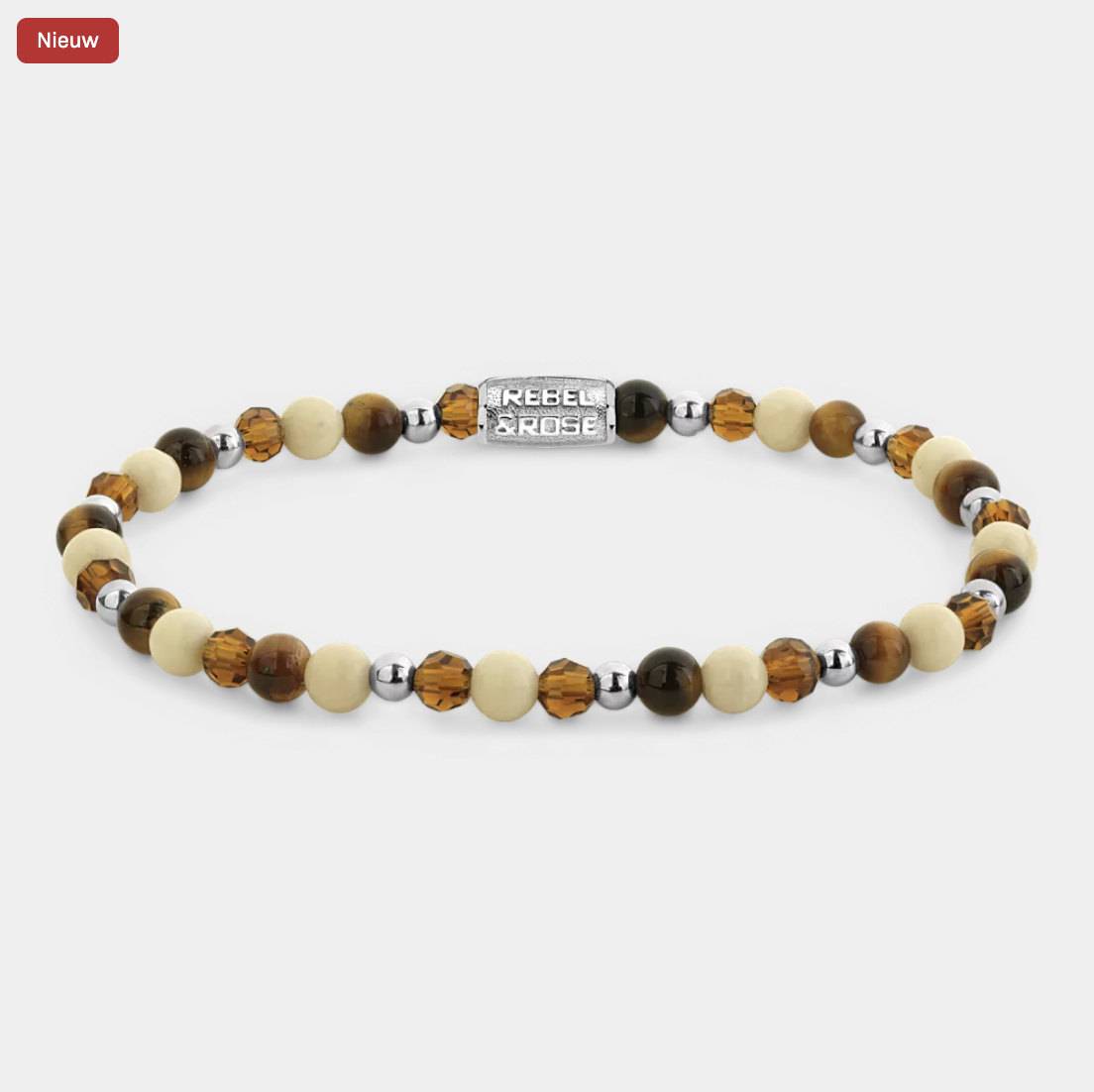 Rebel and Rose Armband "Autumn Love Glam Rocks Silver" met Fossil, Tijgeroog, Hematiet, Glas Rock (maat S: 16,5cm) - 24526