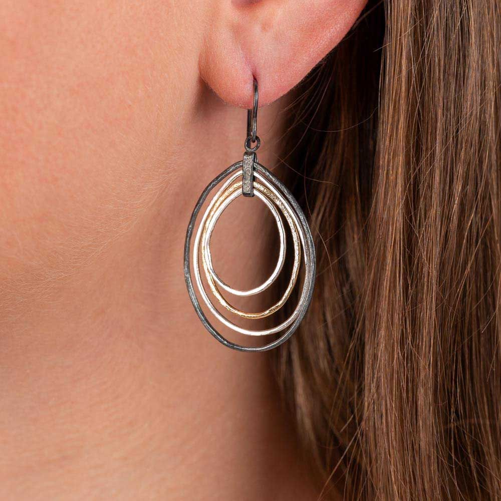 Jeh Jewels Oorhangers, model 21470 zilver/oxie/verguld (lengte 5,5cm.) - 24579