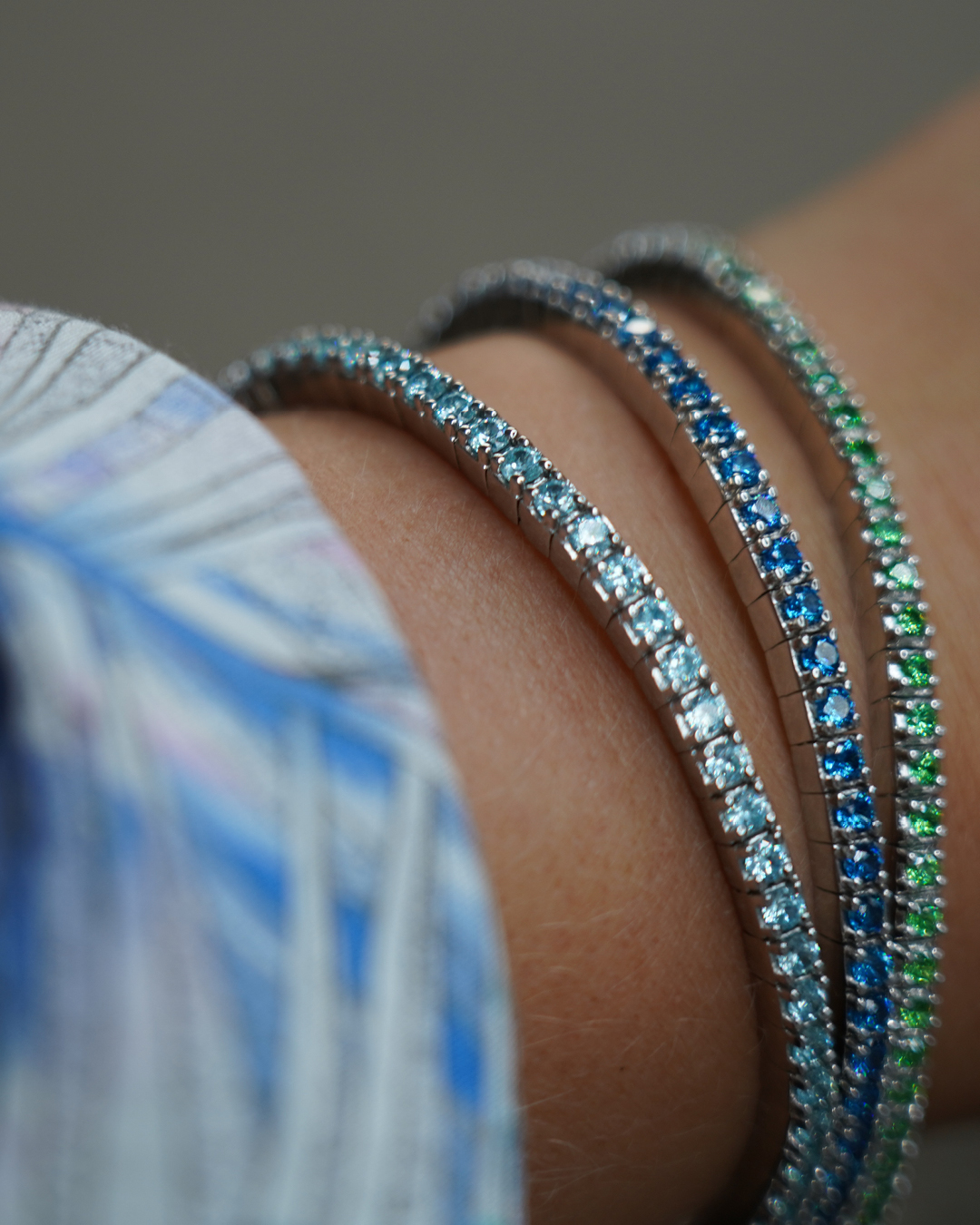 LUIS & FREYA Armband, zilver gerhodineerd flexband met donkerblauw zirkonia 2,5mm. (lengte: M 18,5cm) - 24603
