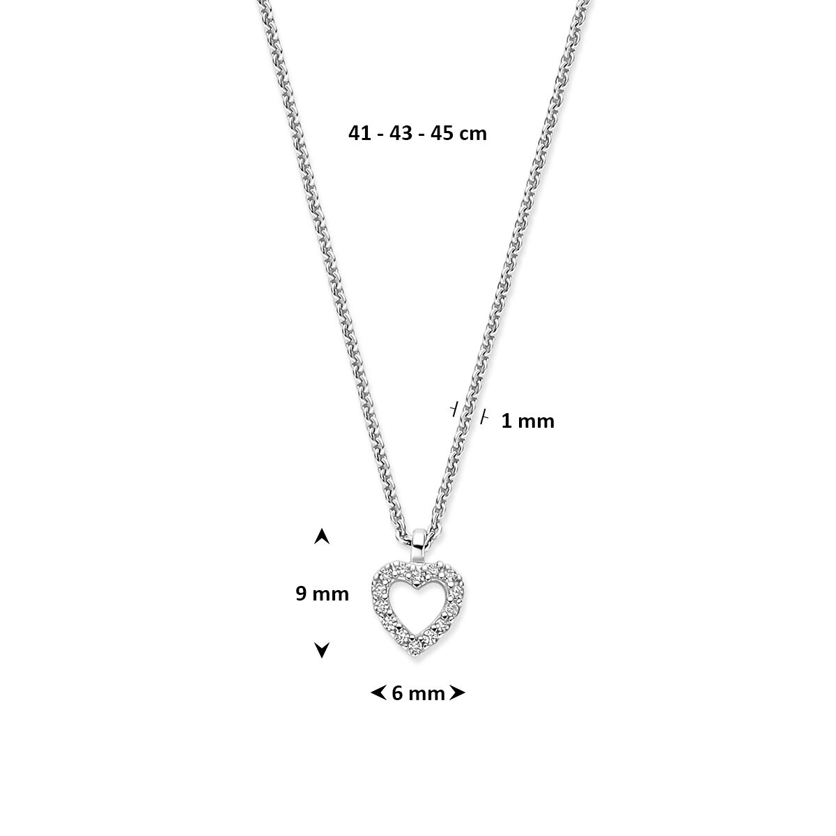 Collier, zilver gerhodineerd met hart en zirkonia hartje (lengte: 41-45cm.) - 24612