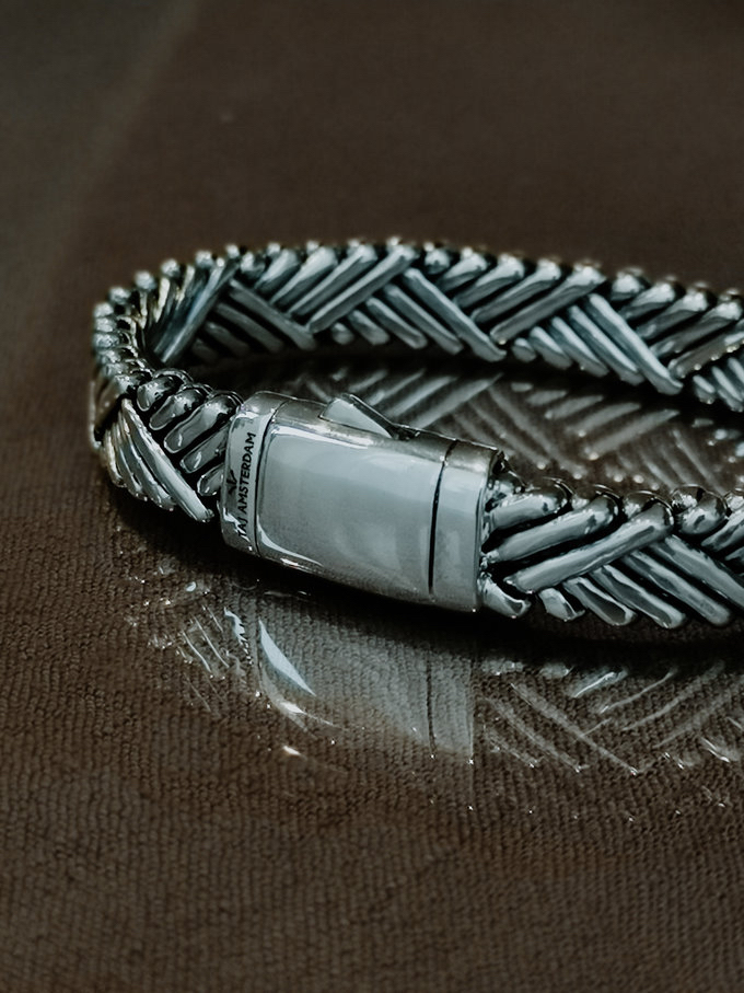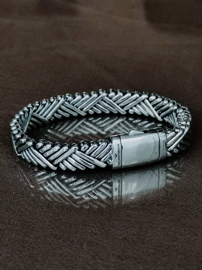 TAJ AMSTERDAM Zilveren Gevlochten Herenarmband AODH (lengte: 21,5cm.) - 24631
