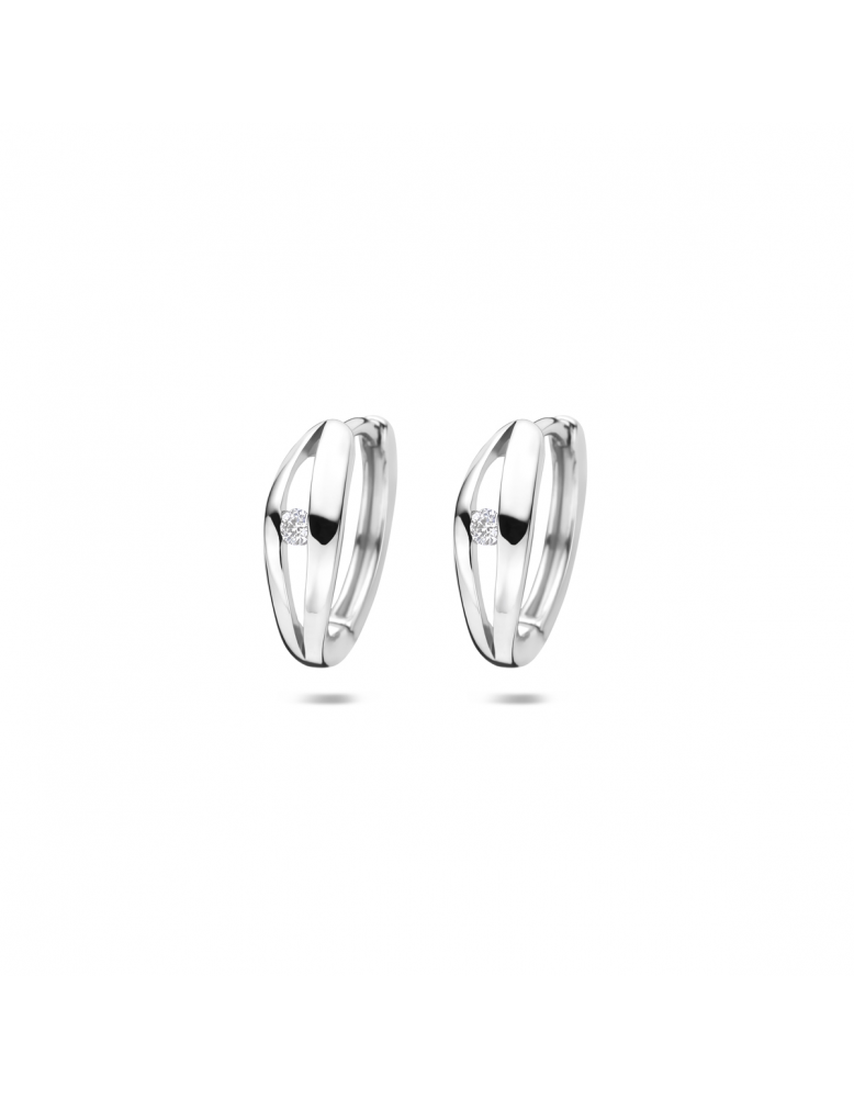 Oorringen, zilver gerhodineerd met lab grown diamant 0.06ct (diameter 14mm.) - 24669