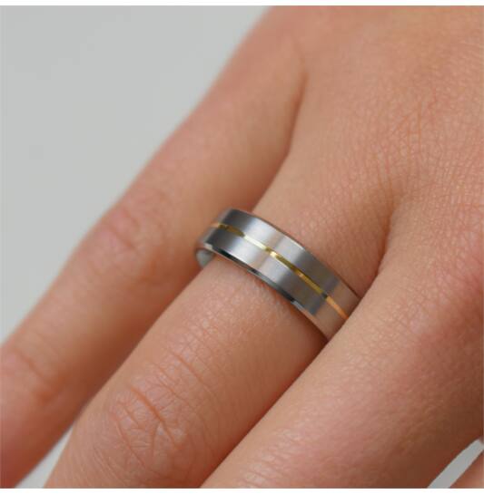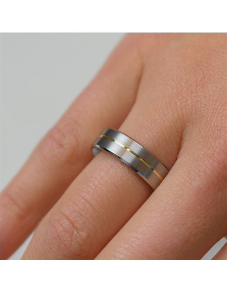 Boccia Ring, titanium model 0101-21 breedte: 6mm. deels verguld - 24701