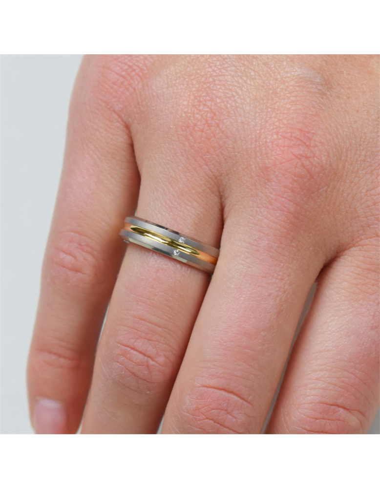 Boccia Ring, titanium/verguld met diamant 0.01ct. model 0144-01 breedte:5mm. - 24703