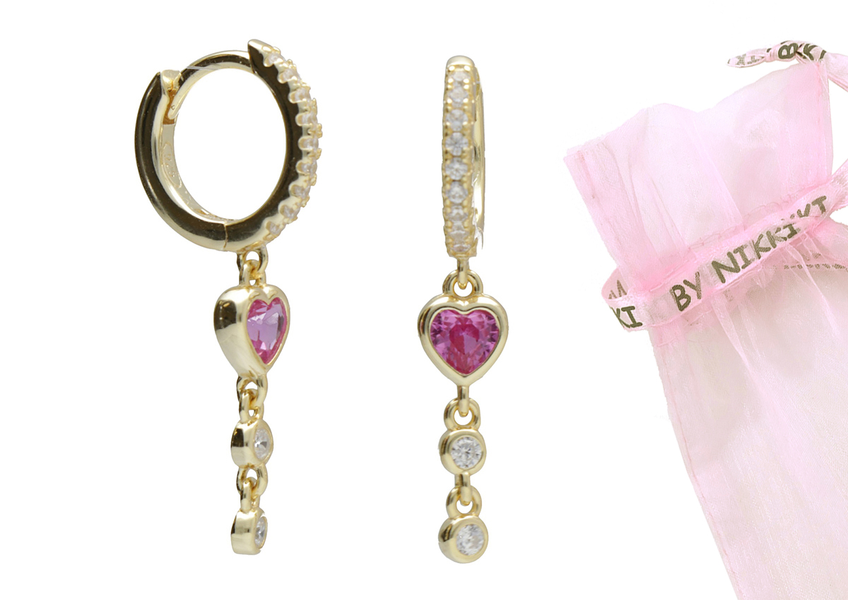 BY NIKKI Oorringen, zilver verguld met roze harthanger (diameter: 10mm.) - 24723