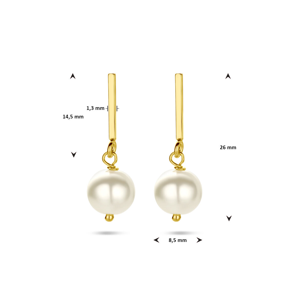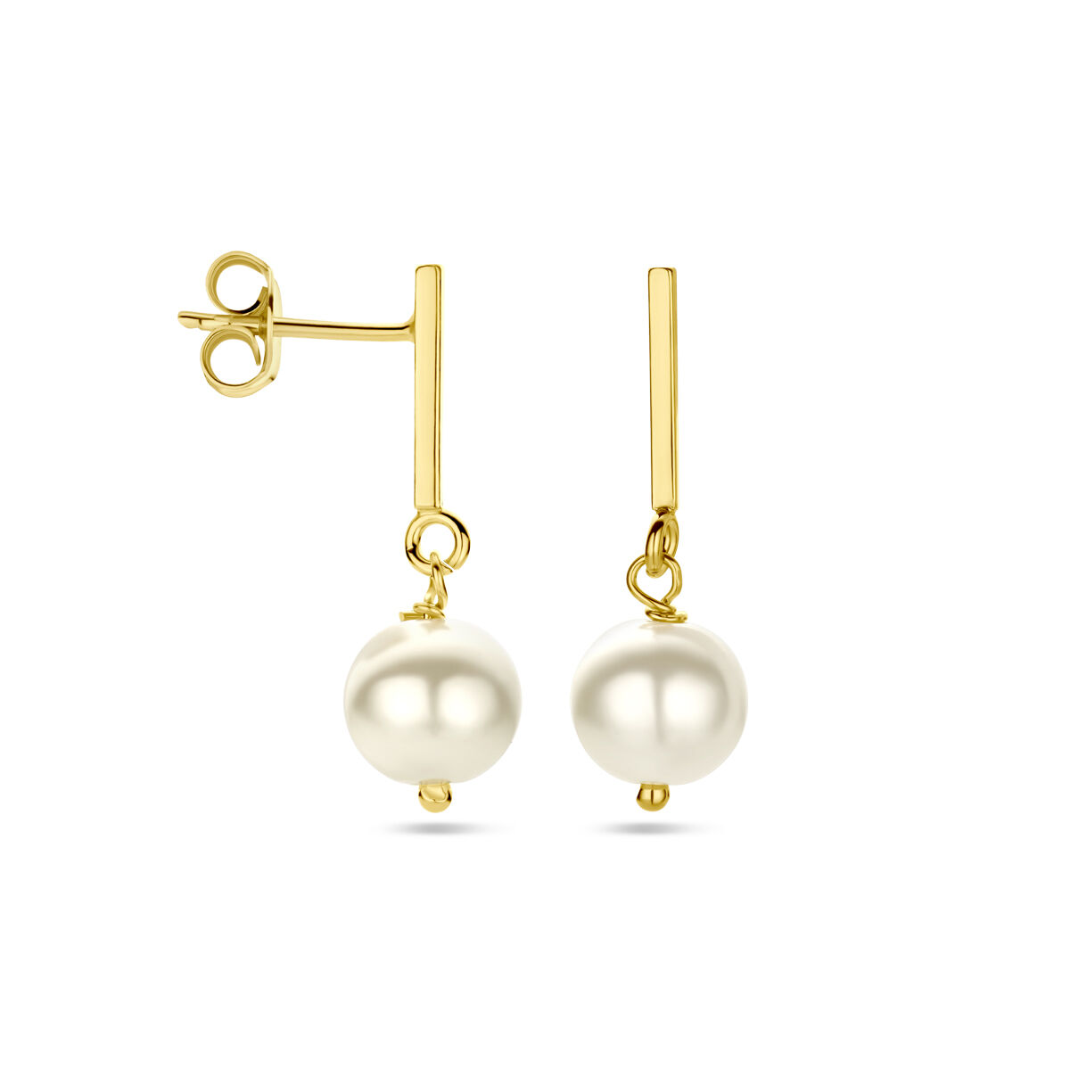 Oorhangers, zilver verguld met immitatieparel (2,6cm.) - 24735